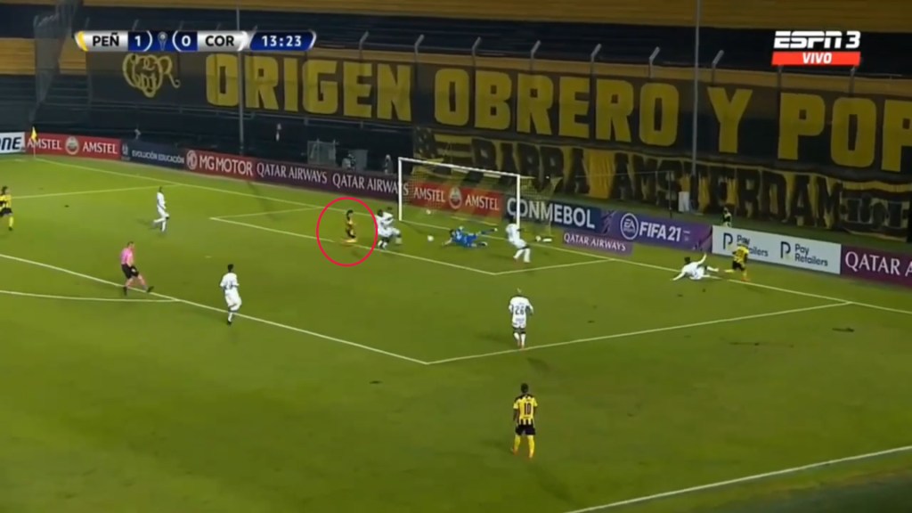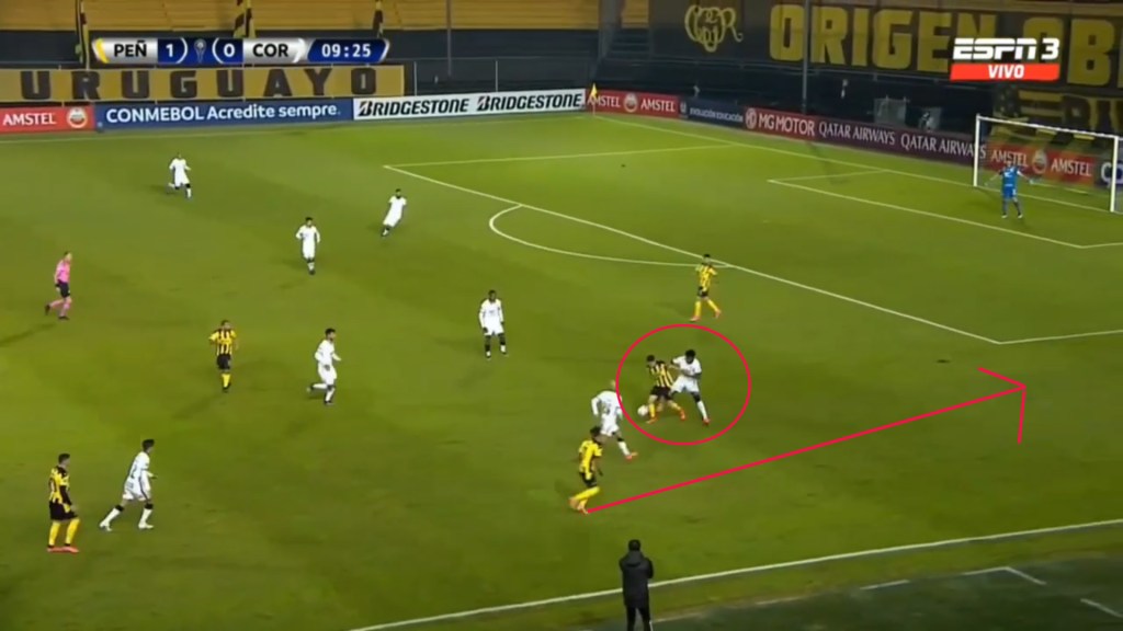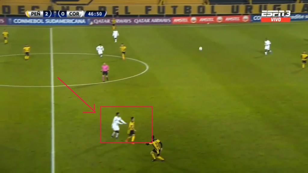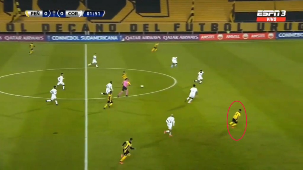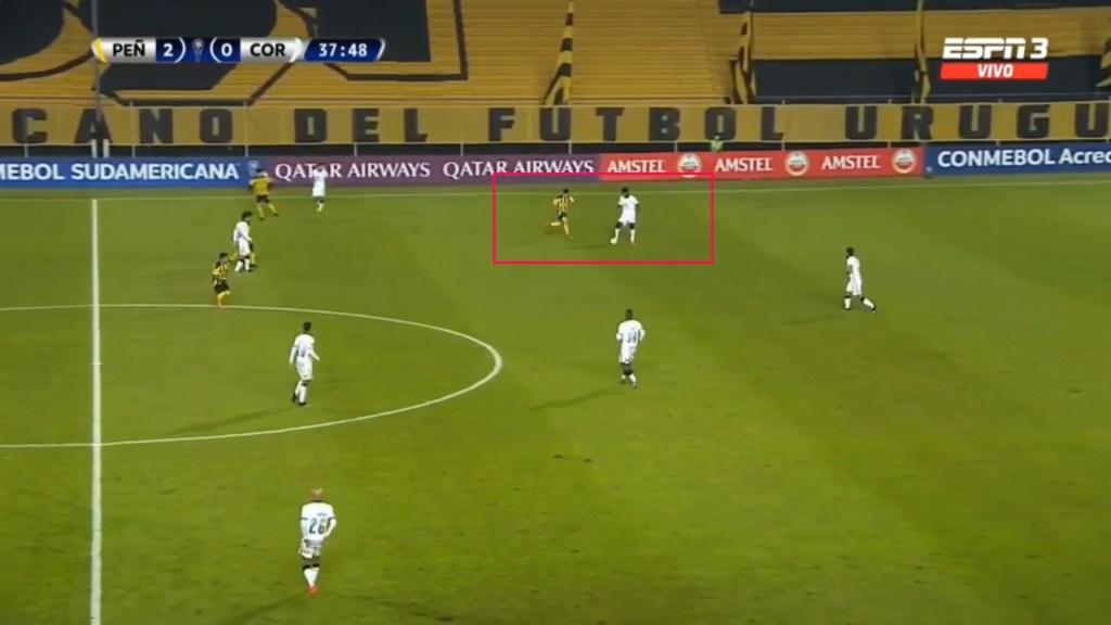 Although Penarol isn’t a team that presses much, Alvarez has been seem to close down defenders and not give them much space to operate
