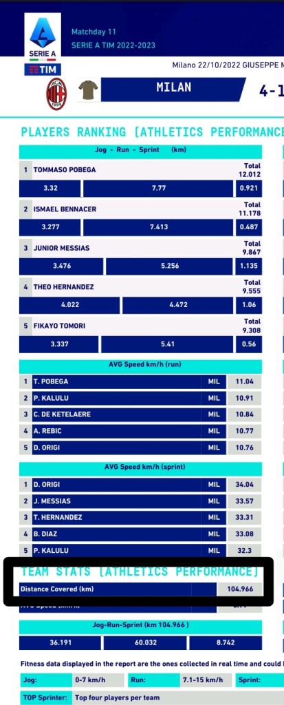 A metric used to measure pressing is PPDA (Passes Per defensive Action). It measures how many passes an opposition makes before Milan makes a defensive action. The lower the PPDA the better. Milan’s PPDA was 11.1 which compared to last season’s PPDA of 8.86 is a clear indication of how weak Milan’s pressing against Monza was. And even further evidence showed that Milan only covered close to a 105km against Monza. Perhaps the fatigue has become a big factor with the extra tight schedule.