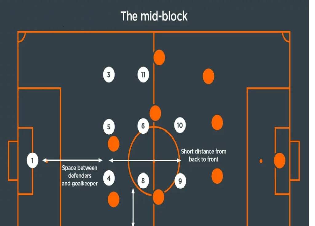 And since the mid block is more of a passive tactic it means ceding possession to the opposition team and allowing them to dominate you.