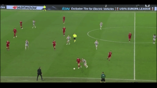 Higher up the pitch Juric uses man to man marking and block passing options to the double pivot often luring Pobega into their pressing traps and having him overpwoered using 2v1’s and forcing him to take decisions quickly.