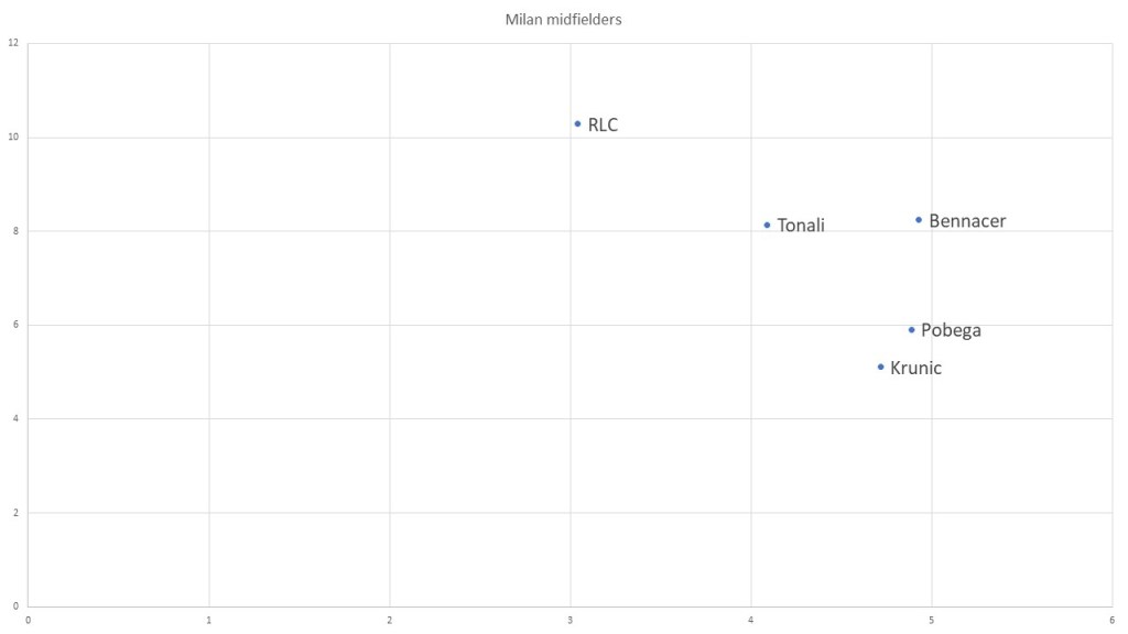As we can see here Ruben Loftus Cheek is head and shoulders above the rest of the pack in terms of offensive actions. This would be a welcome change for Milan fans who have seen their side crumble or settle for draws against teams lower in the table and needing a spark from midfield with Bennacer or Tonali unable to provide it.