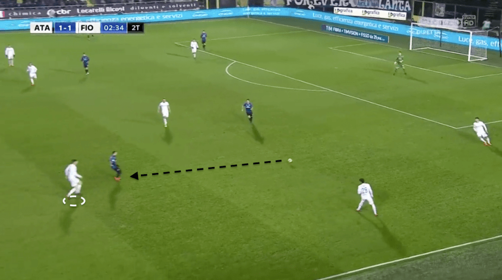 Another aspect that Milenkovic has imbibed with himself is his agressive pressing. In the below example, he press gomez very high that gomez is forced to retreat into Atalanta’s defensive third