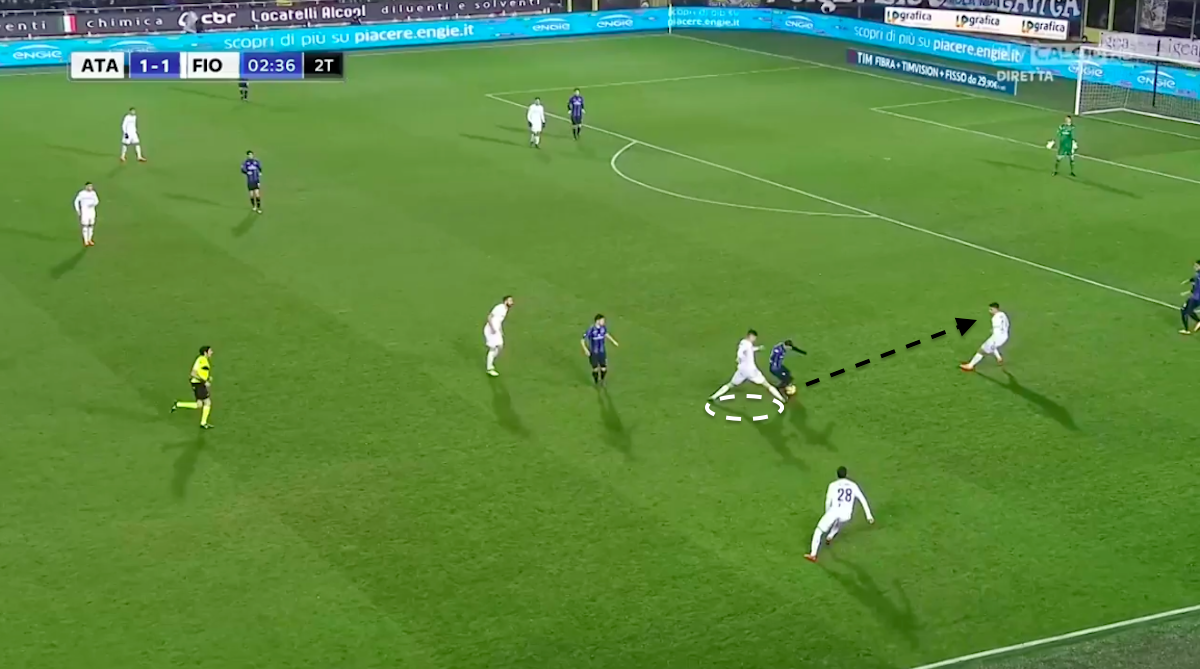 In the image below, gomez tried to turn and loses posession to milenkovic which is turned to a counter attack by Fiorentina and eventually scores.