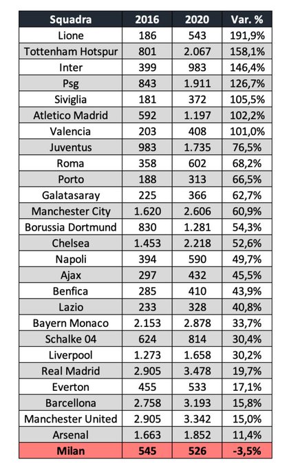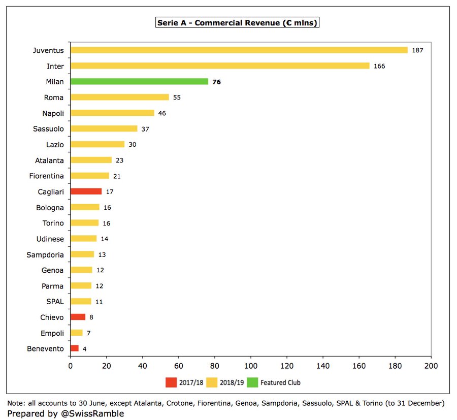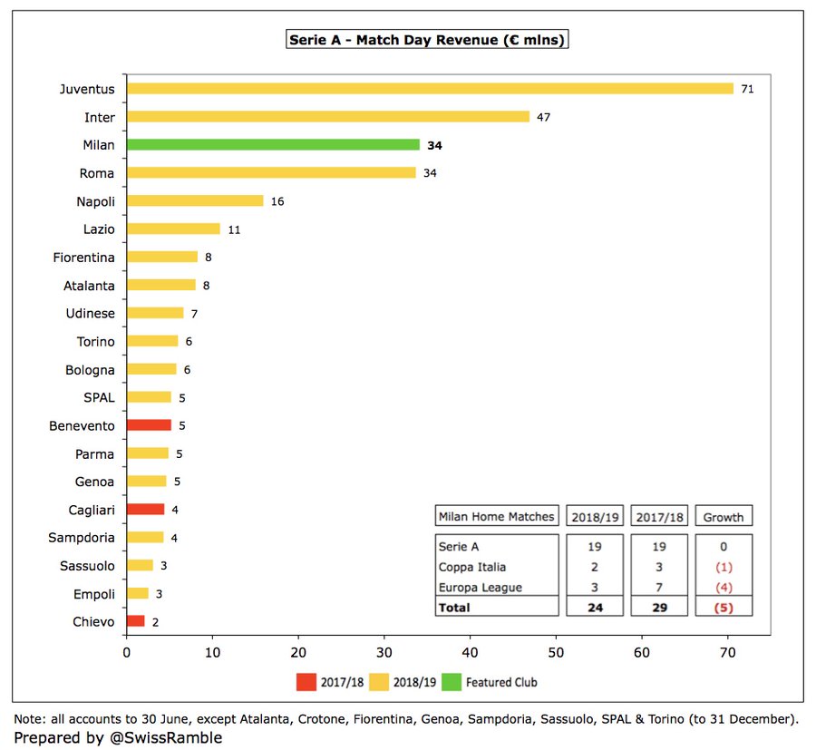 Not to mention how Milan do not own the stadium and have to pay rent to the corporation reducing the income further and putting a burden on the finances of Milan.
