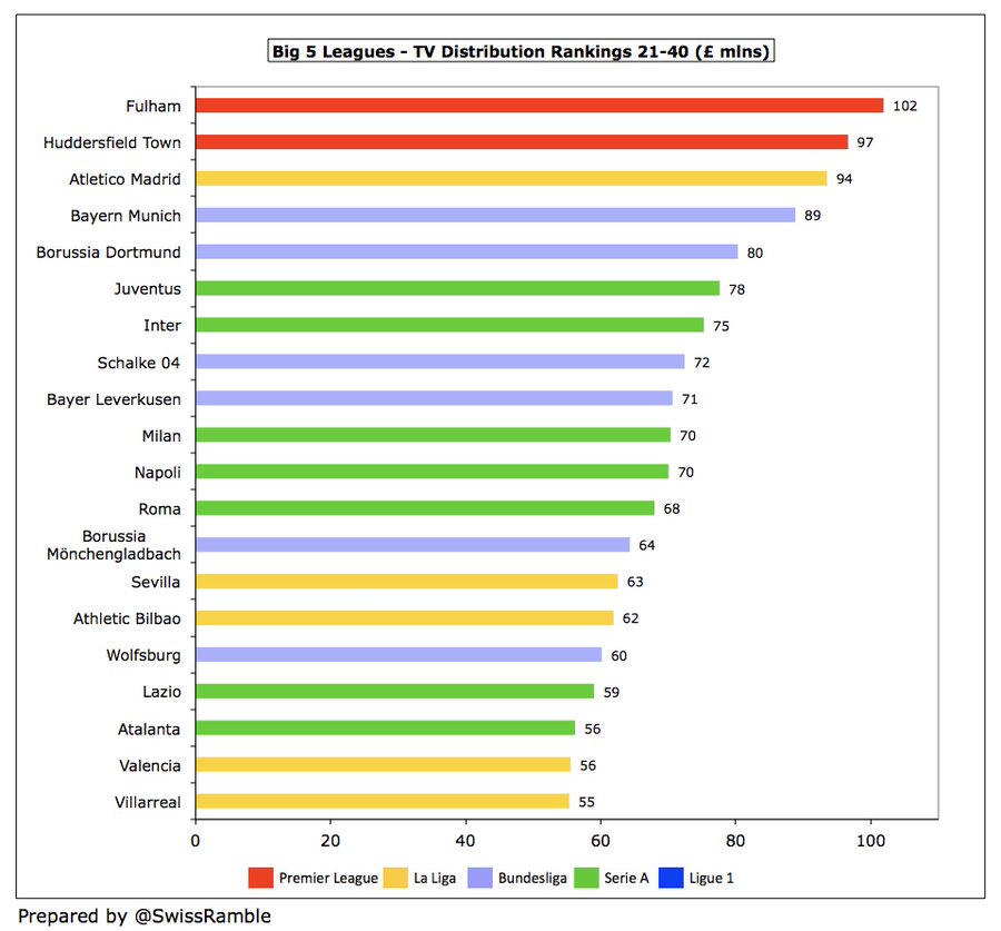 The gap between the premier league and other leagues are phenomenal. You can see how even clubs like Atletico Madrid make less money than a relegated Fulham. It would be quite a task to reach upto the standards of the premier League who under the guidance of Richard Scudamore went through a whole rebranding excperience in 1992 and to this day.