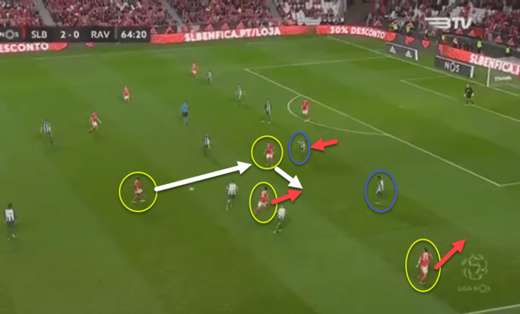 Florentino Luis sits deeper and forms a passing triangle which brings the ball out from the back. Luis tries to pick out a pass to more advanced players or a player between the lines while distributing the ball. Luis is tasked with stopping counter attacks when benifica lose the ball.
