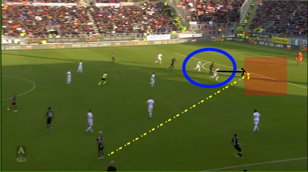 Dusan Vlahovic played as a target man initially in the 3-5-2 with chiesa supporting him. But with Cutrone coming to Fiorentina, he was more of a supporting striker. Dusan Vlahovic is not a traditional no.9 type striker rather he moves around and with his off the ball movement creates space between the lines for wingers to run into or for Cutrone to run into. He occupies half spaces or moves wide to allow fluidity in play. This is a very strong characteristic that is shown by Zlatan Ibrahimovic. Dusan Vlahovic is also an astute dribbler and is not afraid to take on players. With his tall frame he also uses his physicality to hold up the ball